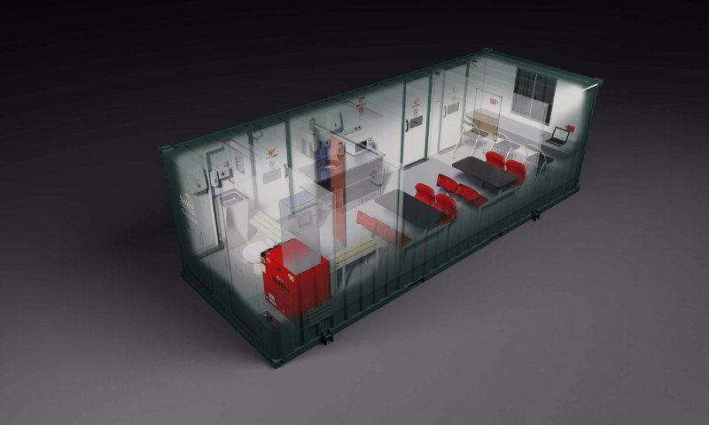 Our state of the art 25x9 Static Hybrid Welfare Units incorporate a modern & green approach to Site Welfare. They include a separate Office, including provision for Printers/Computers, powered through invertor technology. A spacious Canteen area, with adjoining Drying Room, providing welfare facilities such as Heating, Microwave, Kettle, Table & Chairs, Sink & Washing area. The Unit also includes a Fresh Water Micro Flush Toilet, reducing the risk of extra servicing costs to the customer.
